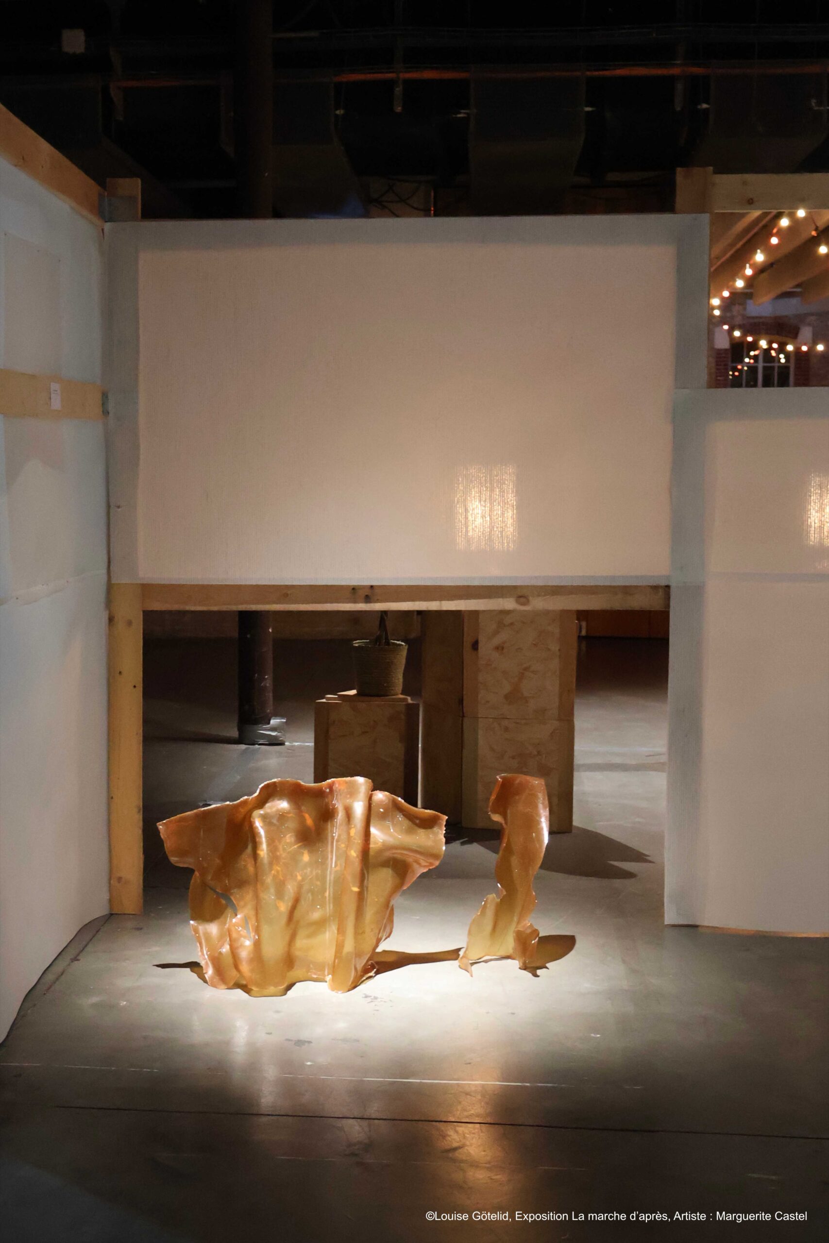 Marguerite Castel exhume des techniques traditionnelles et donne naissance à des sculptures et à des installations dans lesquelles la matière qui se transforme, se dégrade et se recombine joue un rôle moteur.
