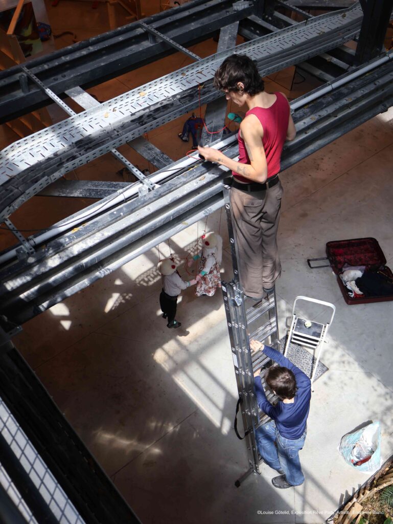 de la scénographie a été conçue à partir de matériaux de réemploi ou de prêt : châssis-miroir et quincaillerie.