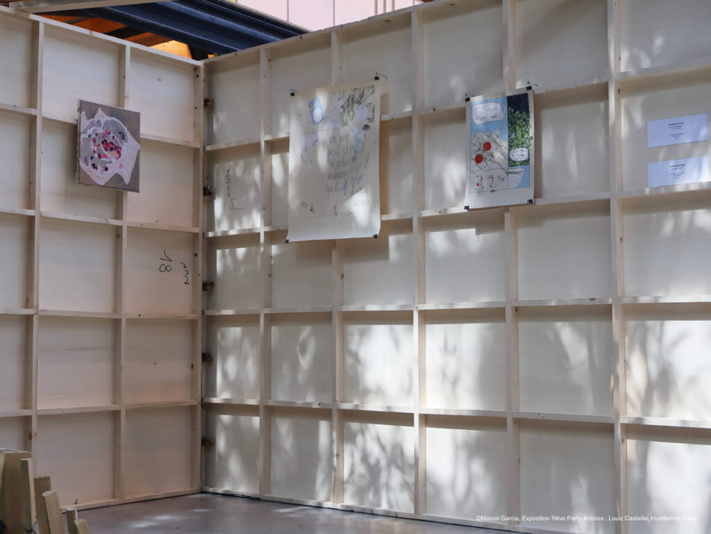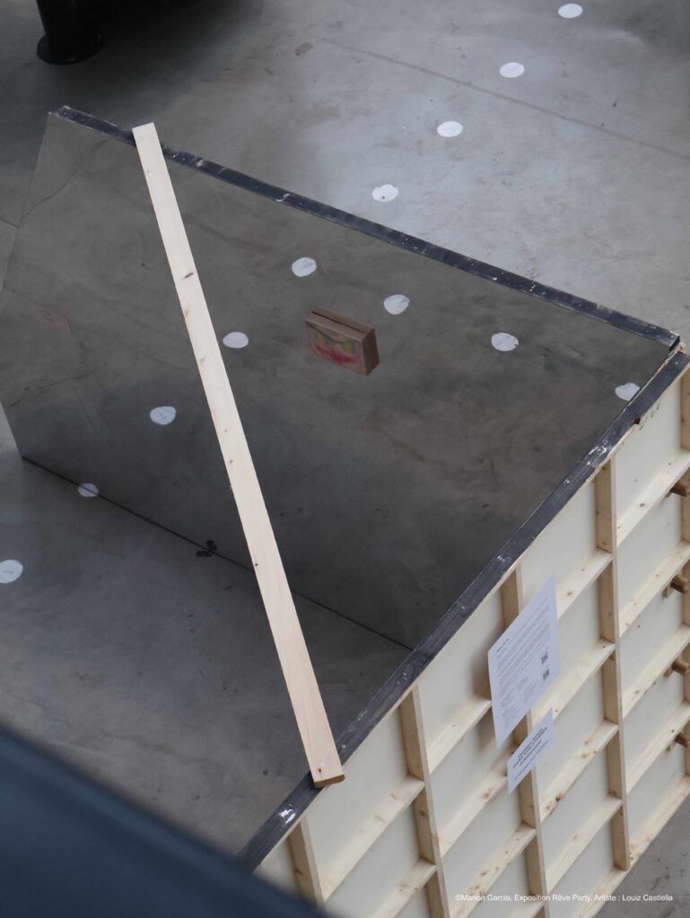 des éléments utilisés pour la scénographie ont eu une troisième vie après l’exposition : châssis-miroirs, tasseaux bois et quincaillerie.