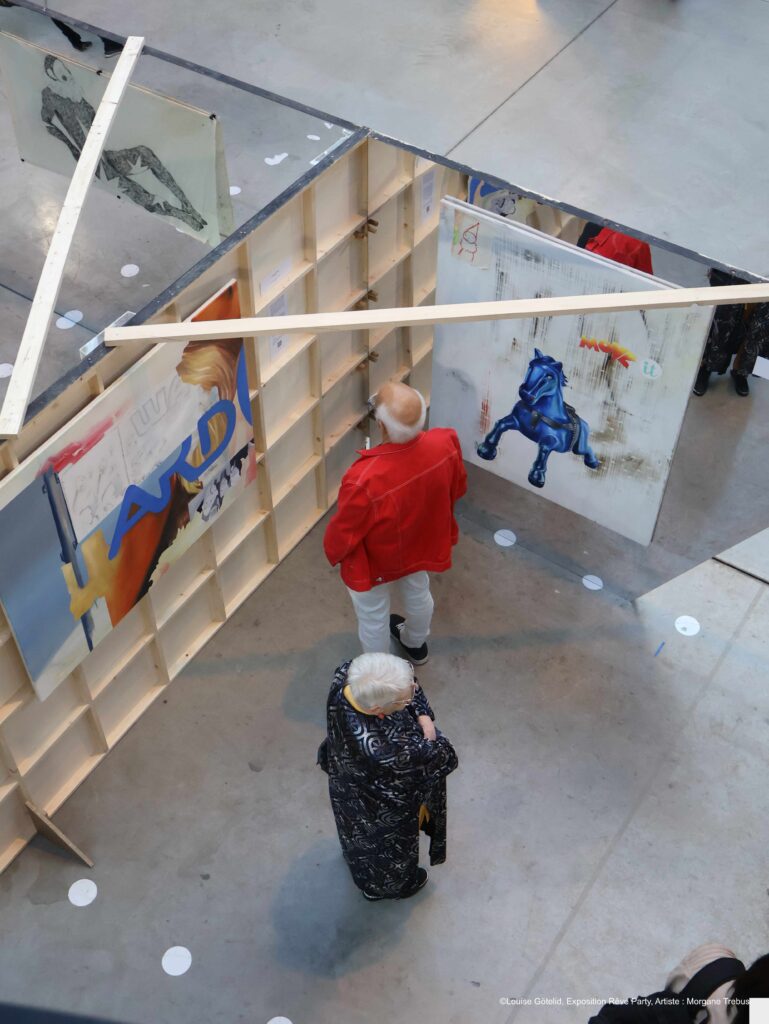 L’exposition se déploie en quatre temps, pour explorer les différentes facettes de la fête : l’euphorie, la rêverie, l’intimité, la construction de soi. La scénographie, conçue à partir de châssis miroirs récupérés d’un défilé de haute couture, renvoie à notre propre reflet : la fête, bien que collective, vient toucher à quelque chose de profondément personnel. Elle active nos souvenirs — joyeux ou douloureux — et interroge notre manière de célébrer.