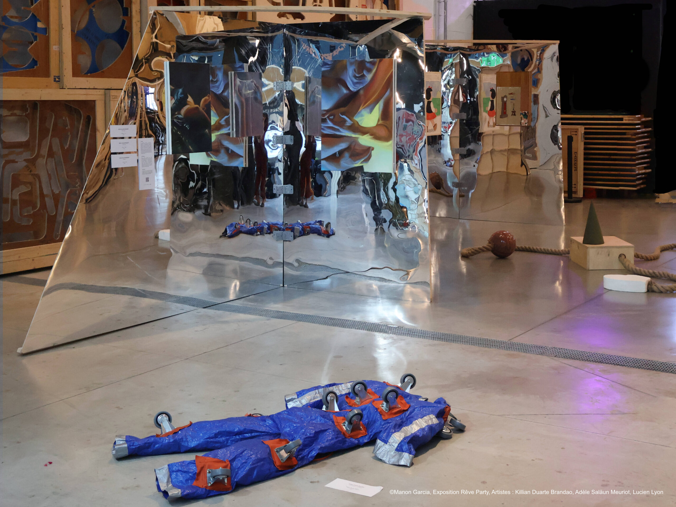 L’exposition se déploie en quatre temps, pour explorer les différentes facettes de la fête : l’euphorie, la rêverie, l’intimité, la construction de soi. La scénographie, conçue à partir de châssis miroirs récupérés d’un défilé de haute couture, renvoie à notre propre reflet : la fête, bien que collective, vient toucher à quelque chose de profondément personnel. Elle active nos souvenirs — joyeux ou douloureux — et interroge notre manière de célébrer.